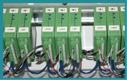 Unidades de carril DIN EIT instaladas en el gabinete para soportarmúltiples sensores compactos utilizados en la producción.