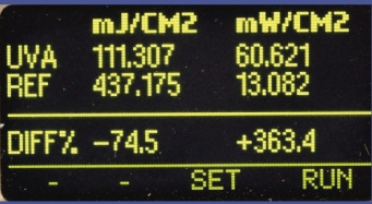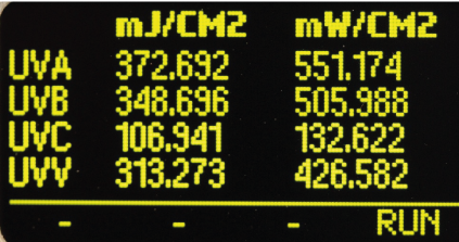 · Referencia: permite al usuario almacenar una ejecución en la memoria del instrumento para permitir una fácil comparación con las condiciones UV actuales.