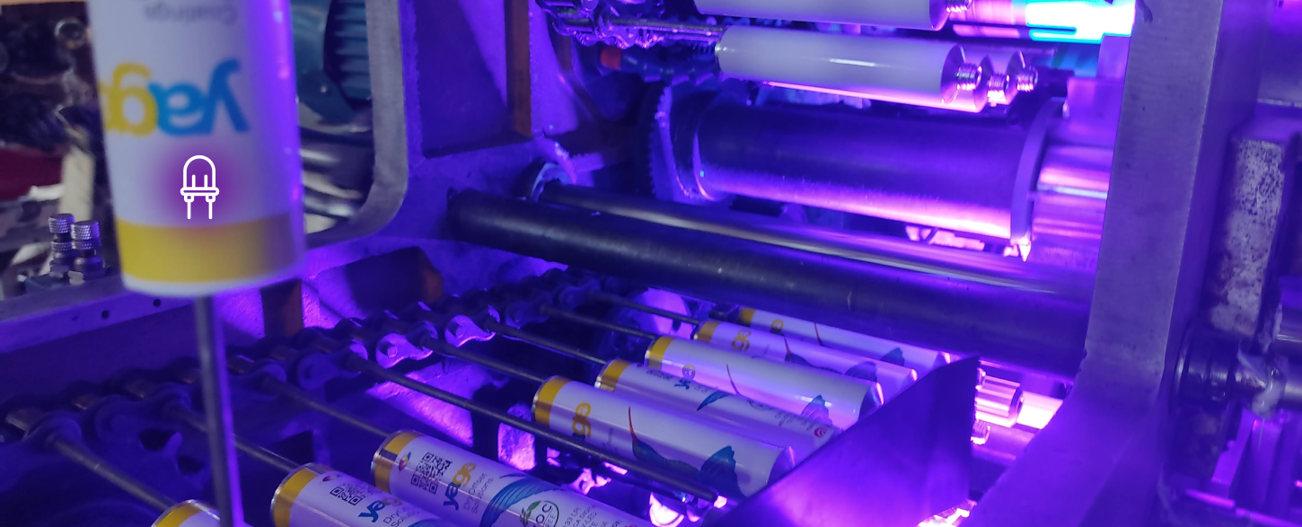 Diseñamos y fabricamos equipos de fotopolimerización industrial con lámpara UV LED con longitud de onda 395 nm para objetos y envases cilíndricos impresos, estos equipos son necesarios para el curado de las impresiones UV de diferentes materiales como: resinas, plásticos, metal, vidrio, cerámica o madera, son muy fácil de adaptar a líneas de producción existentes en máquinas de Offset seco UV, Serigrafía UV, Tampografía UV, Inkjet UV, en máquinas Kase, Omso, Dubuit, Kammann, Atma, Politype, Presstek, KBA Genius, CAI, entre otras.